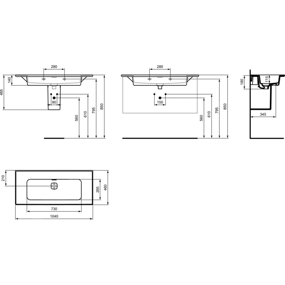 • Typ: Wpuszczane w blat/Z powierzchnią boczną