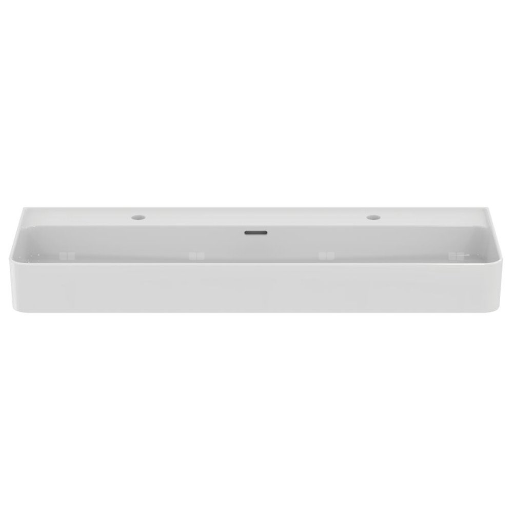 Umywalka Strada II z 2 otworami na baterię, z przelewami o szczelinowym kształcie i białymi pokrywami korków. Rekomendowany montaż z baterią bez korka automatycznego. Do montażu z meblami, półpostumentem T299601 lub samodzielnie z syfonem. Opcjonalny montaż z korkiem typu Click-clack z metalową pokrywą T3629AA.