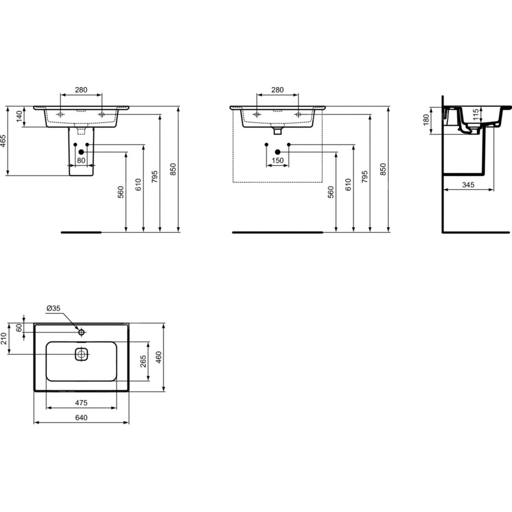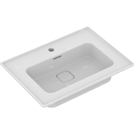 Umywalka Strada II z 1 otworem na baterię, ze szczelinowym przelewem i korkiem o białej pokrywie. Do montażu z meblem, z półpostumentem T299601 lub samodzielnie z syfonem. Opcjonalny montaż z korkiem typu Click-clack z metalową pokrywą T3629AA.