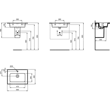 - Typ: Wpuszczane w blat/Z powierzchnią boczną