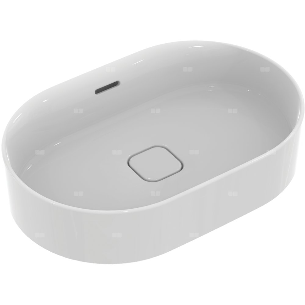 Umywalka Strada II bez otworu na baterię, z przelewem o szczelinowym kształcie oraz korkiem o białej pokrywie. Komplet zawiera zestaw montażowy i szablon do wycinania. W przypadku montażu z baterią z korkiem automatycznym, wymagane jest zamowienie przedłużonego cięgna korka A960200AA. Opcjonalny montaż z korkiem typu Click-clack z metalową pokrywą T3629AA.