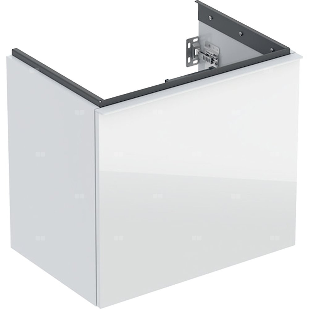 Szafka pod umywalkę Geberit Acanto, z szufladą i szufladą wewnętrzną, krótka: Szerokość umywalki=60cm, Korpus: biały / lakierowany na wysoki połysk, Front: biały / szkło błyszczące, Uchwyt: biały / powlekany proszkowo, matowy
