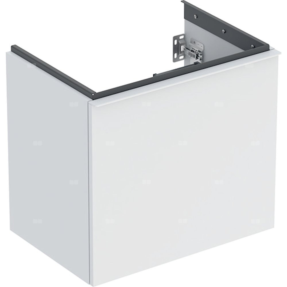 Szafka pod umywalkę Geberit Acanto, z szufladą i szufladą wewnętrzną, krótka: Szerokość umywalki=60cm, Korpus i front: biały / lakierowany matowy, Uchwyt: biały / powlekany proszkowo, matowy