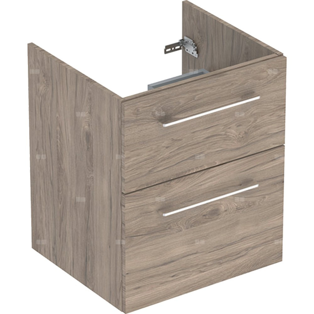 Szafka pod umywalkę meblową Geberit Selnova Square, slim, z dwoma szufladami: B=53.8cm, Szerokość umywalki=55cm, H=63.5cm, T=50.2cm, Orzech włoski hickory / Melamina, struktura drewna