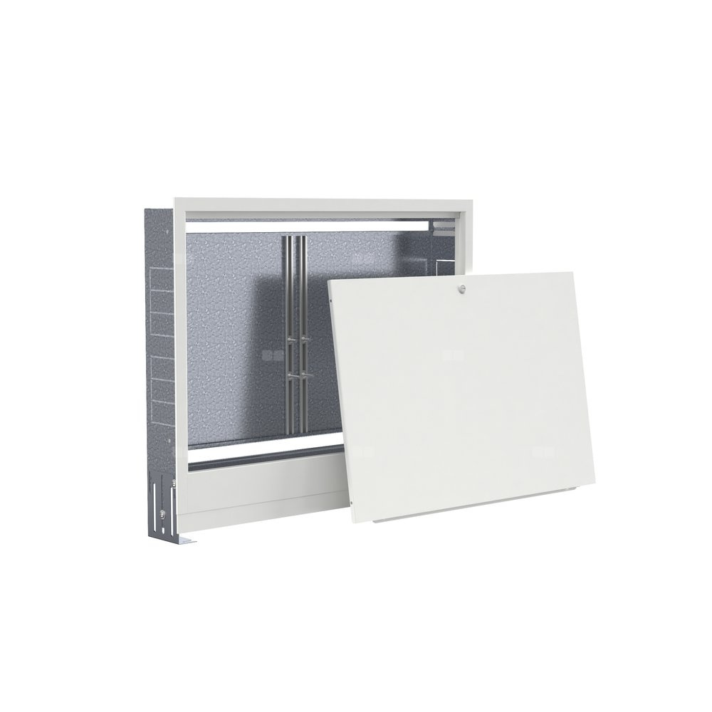 Rozdzielaczowe szafki podtynkowe QIK o głębokości 120 mm, wykonana w całości z blachy stalowej ocynkowanej o grubości 0,8 mm malowana proszkowo w kolorze RAL 9003. Front wyposażony jest w zamek monetowy, zdejmowany tył szafki umożliwia wygodny montaż. Dostarczana z prowadnicami do montażu rozdzielacza oraz z kompletami montażowych śrub zamkowych o różnych długościach.
