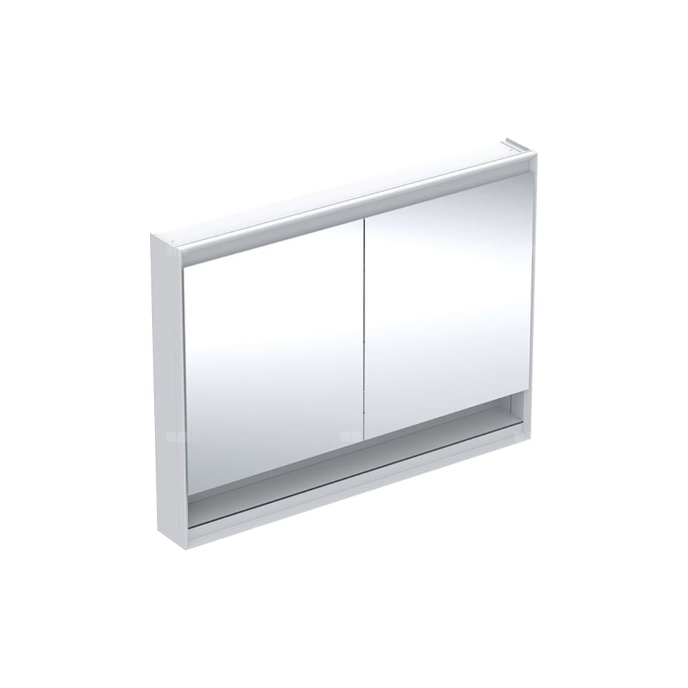 Szafka z lustrem Geberit ONE z wnęką i ComfortLight, z dwoma drzwiami, montaż natynkowy, wysokość 90 cm: B=120cm, Biały / Aluminium malowane proszkowo