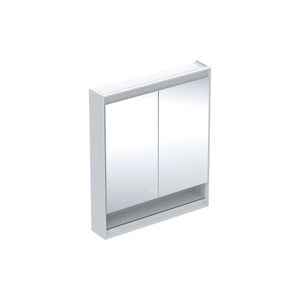 Szafka z lustrem Geberit ONE z wnęką i ComfortLight, z dwoma drzwiami, montaż natynkowy, wysokość 90 cm: B=75cm, Biały / Aluminium malowane proszkowo