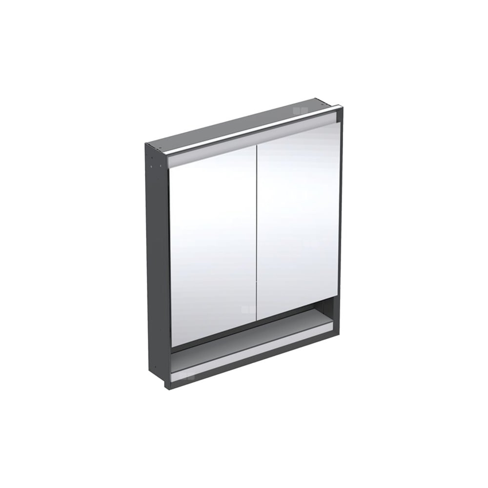 Szafka z lustrem Geberit ONE z wnęką i ComfortLight, z dwoma drzwiami, montaż podtynkowy, wysokość 90 cm: B=75cm, Czarny mat / Aluminium malowane proszkowo