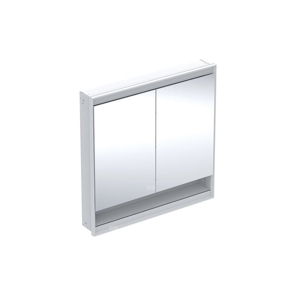 Szafka z lustrem Geberit ONE z wnęką i ComfortLight, z dwoma drzwiami, montaż podtynkowy, wysokość 90 cm: B=90cm, Biały / Aluminium malowane proszkowo