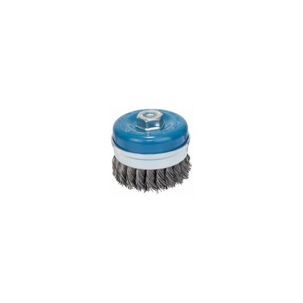 | Tekst produktu, osprzęt szary | Szczotka druciana garnkowa, drut pleciony Odpowiednia do wysokowydajnego czyszczenia od średnich do dużych powierzchni metalowych, np. usuwania silnej korozji, powłok antykorozyjnych, farb i lakierów. Odpowiednia do wszystkich szlifierek kątowych z gwintem M14 i szlifierek GGS 6 S Professional |