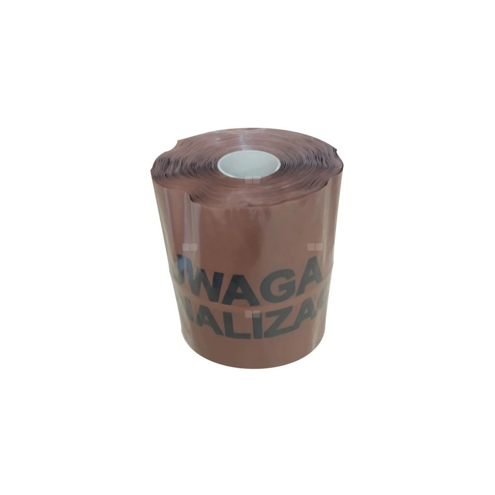 Taśma ostrzegawcza kolor brązowy Napis "UWAGA KANALIZACJA" QIK 100 m x 200 mm