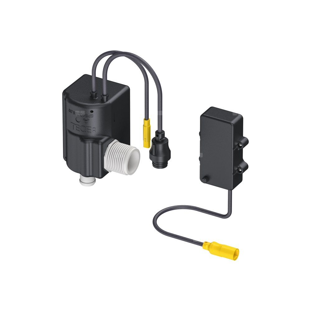Elektrozawór 7,2 V z filtrem zanieczyszczeń; wymagane minimalne ciśnienie przepływu 0,5 bar. Do stosowania z elektroniką spłukującą TECEfilo i zaworem spłukującym do pisuaru U 2.W zestawie bateria 7,2 V (2 x R6 – AA (3,6 V))