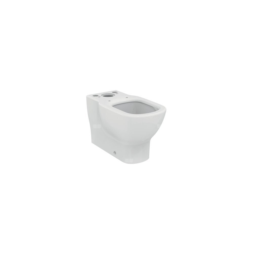 Miska lejowa Tesi, przylegająca do ściany, z poziomym odpływem. Zestaw montażowy TT0257919 w komplecie. Opcjonalnie: Kolano przyłączeniowe 90° (w przypadku montażu pionowego). Niezbędne wyposażenie: Deska sedesowa Tesi z pokrywą. Sprawdź rekomendowane wyposażenie w cenniku Ideal Standard.
