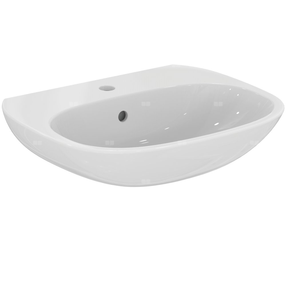 Umywalka Tesi z 1 otworem na baterię wybitym centralnie. Do montażu z: postumentem T033501, półpostumentem T033401 lub samodzielnie z syfonem.