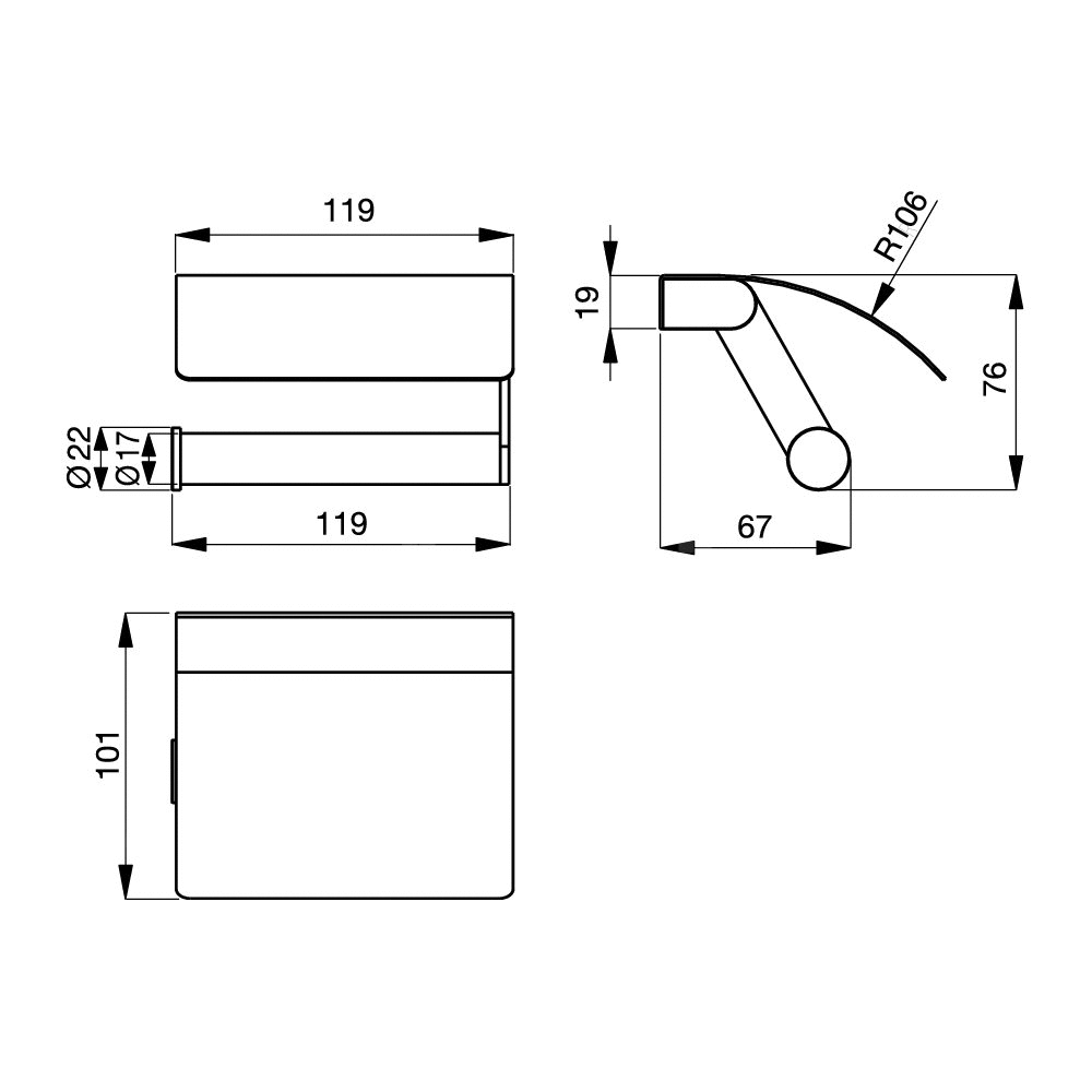 Uchwyt na papier toaletowy 119x40x110 mm z chromowanym wykończeniem - CONNECT