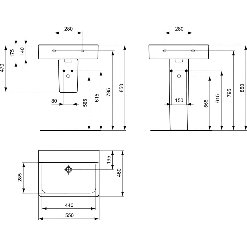 Umywalka 550x460x175 mm, bez otworu na baterię, bez przelewu - CONNECT