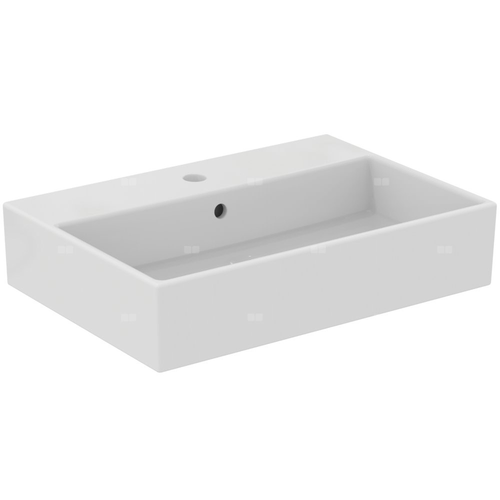 Umywalka 600x420x145 mm Spód szlifowany w białym połysku, 1 otwór na baterię, z przelewem - STRADA