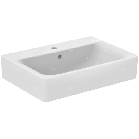 Umywalka 650x460x175 mm w białym połysku, 1 otwór na baterię, z przelewem - CONNECT