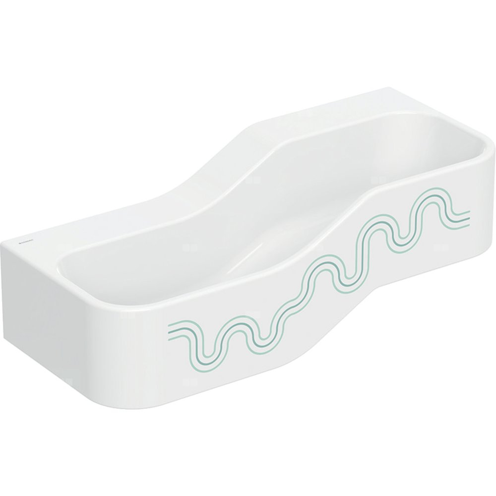 Umywalka GEBERIT Bambini 2-stanowiskowa prostokątna (rynna, elementy dekoracyjne), biała, 900mm, bez otworu na baterię, bez odpływu przelewowego, półka od ściany