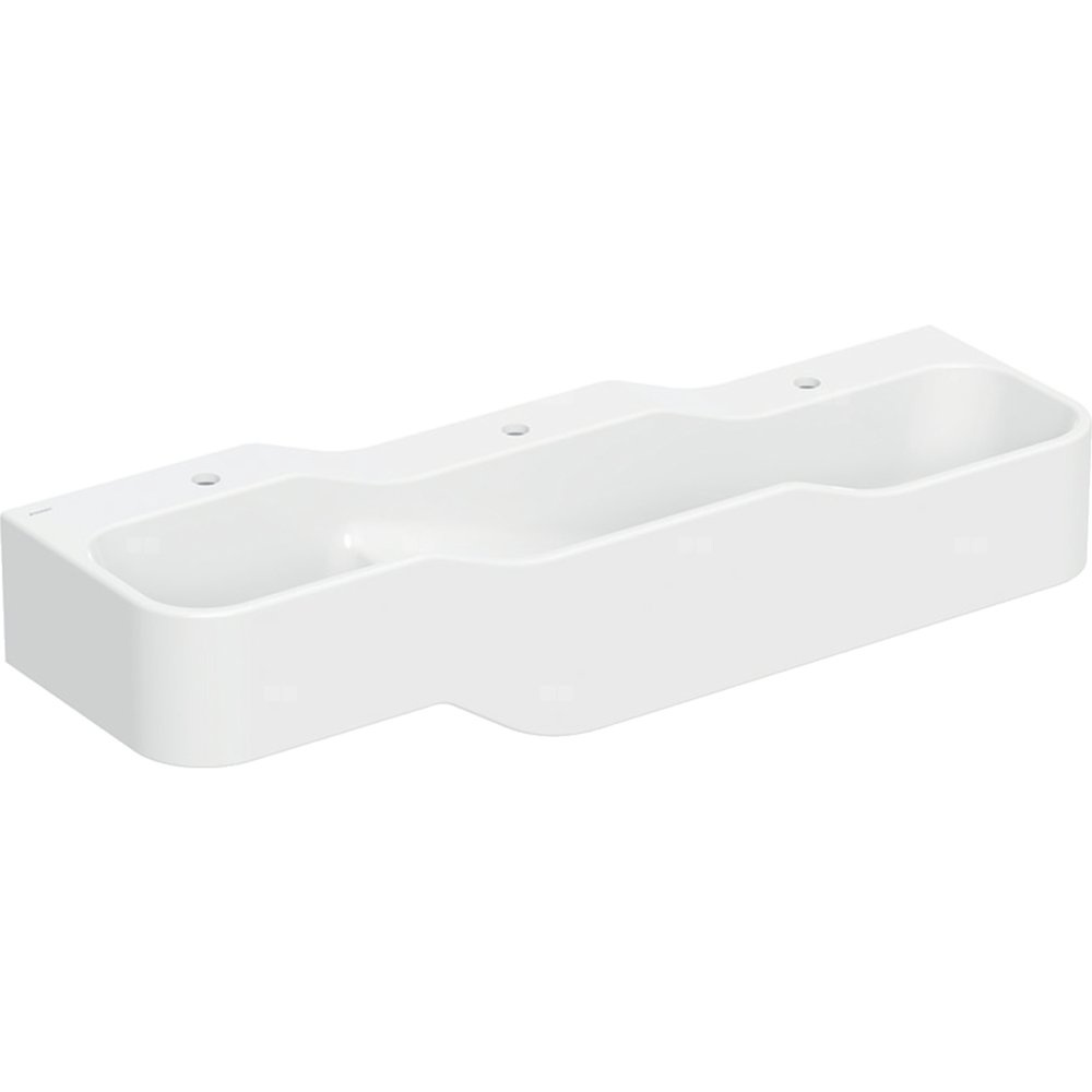 Umywalka GEBERIT Bambini 3-stanowiskowa prostokątna (rynna, bez elementów dekoracyjnych), biała, 1400mm, otwór na baterię na środku (x3), bez odpływu przelewowego, półka od ściany