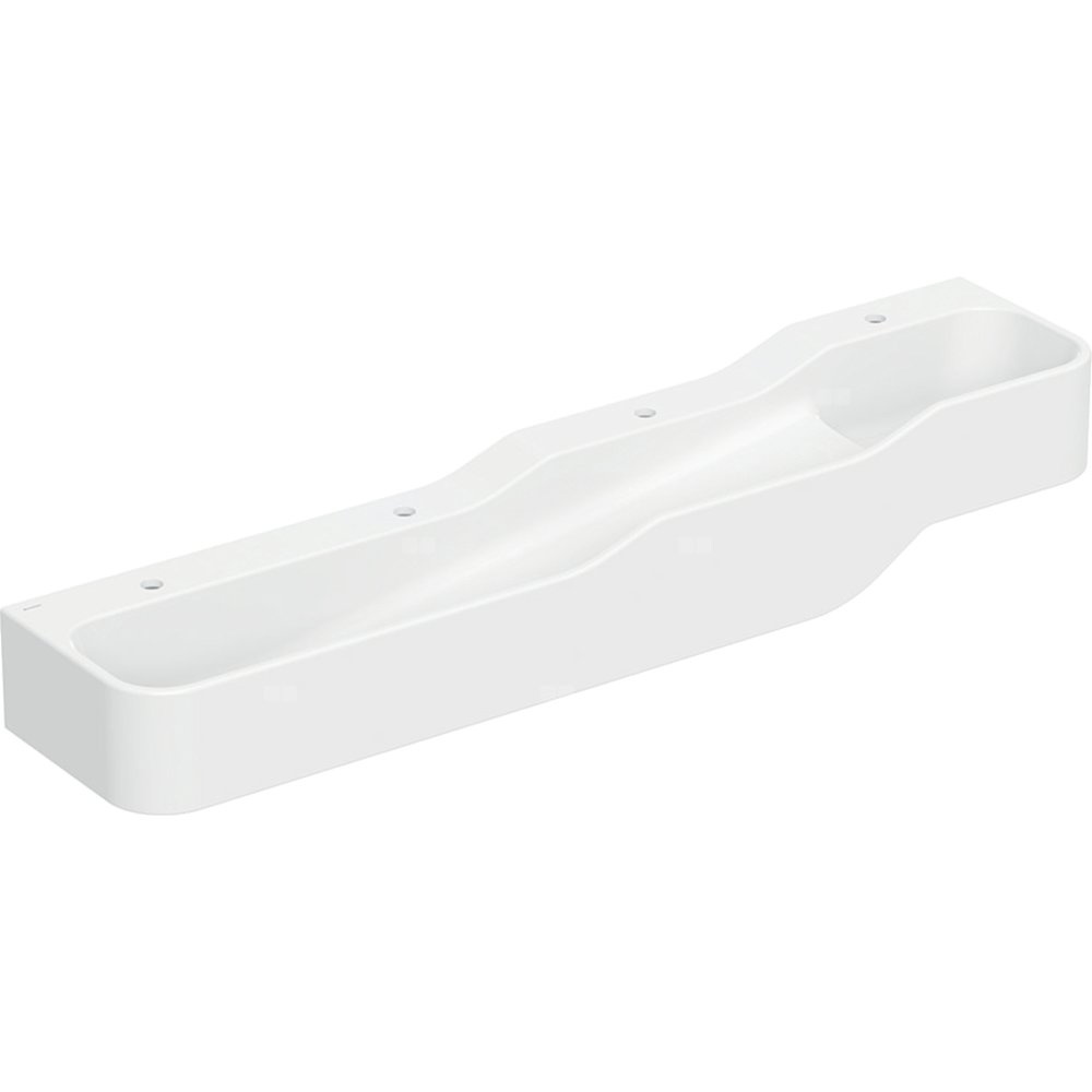 Umywalka GEBERIT Bambini 4-stanowiskowa prostokątna (rynna, bez elementów dekoracyjnych), biała, 1800mm, otwór na baterię na środku (x4), bez odpływu przelewowego, półka od ściany