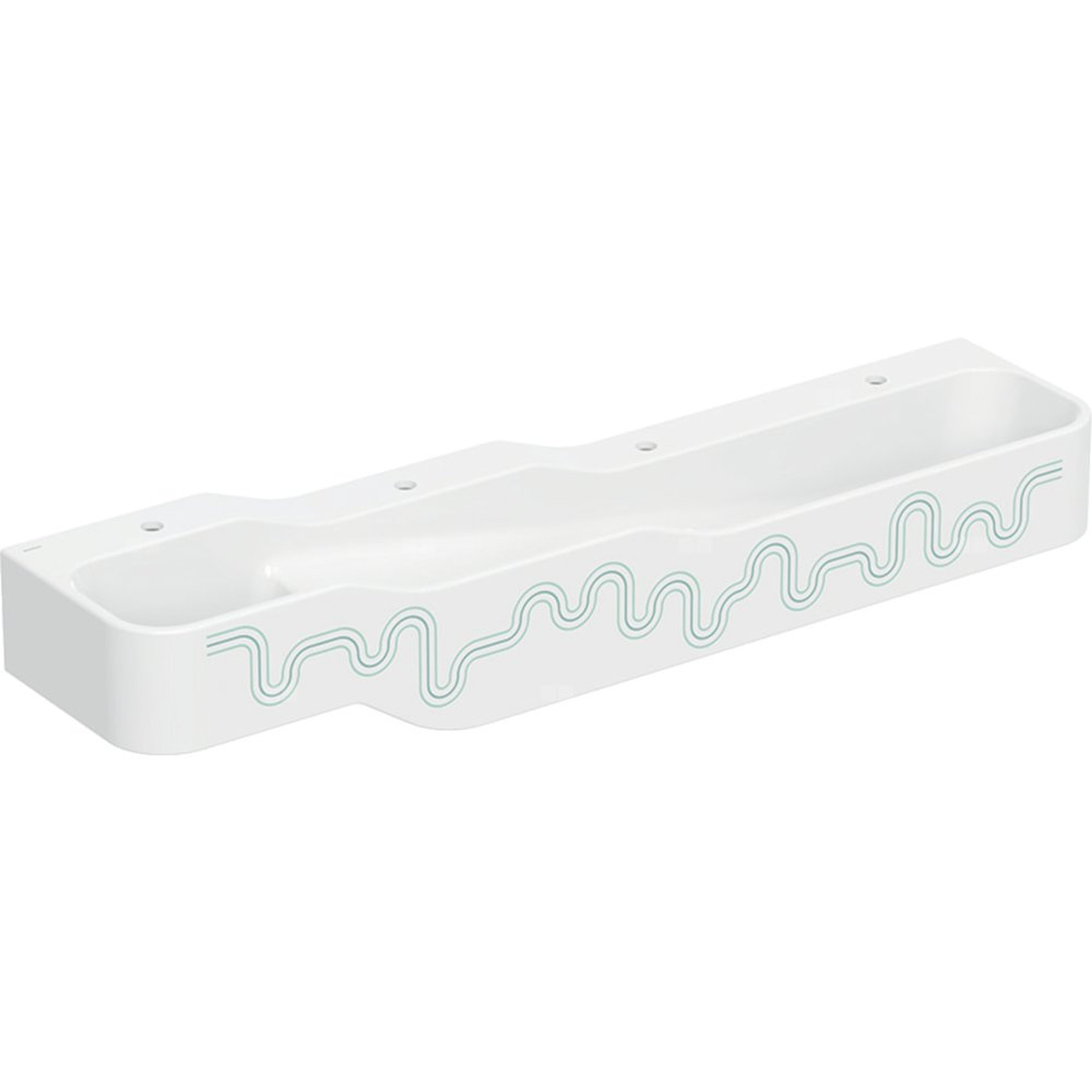 Umywalka GEBERIT Bambini 4-stanowiskowa prostokątna (rynna, elementy dekoracyjne), biała, 1800mm, otwór na baterię na środku (x4), bez odpływu przelewowego, półka od ściany
