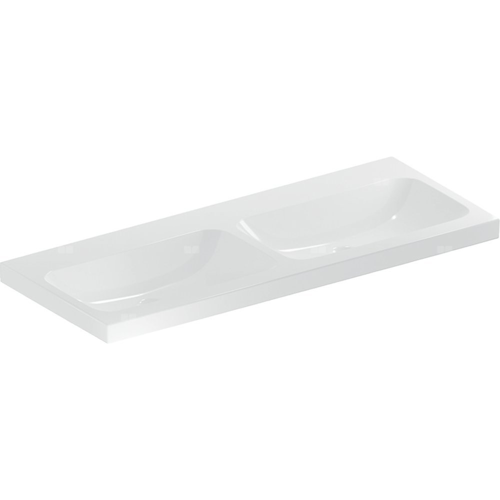 Umywalka GEBERIT iCon Light podwójna 2-stanowiskowa prostokątna, biała / KeraTect, 1200mm, bez otworu na baterię, bez odpływu przelewowego, półka od ściany