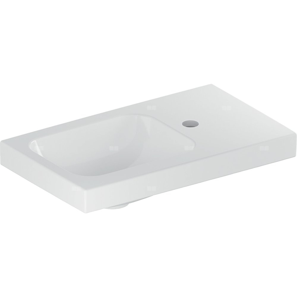 Umywalka GEBERIT iCon Light prostokątna, biała / KeraTect, 530mm, otwór na baterię z prawej, bez odpływu przelewowego, półka z prawej