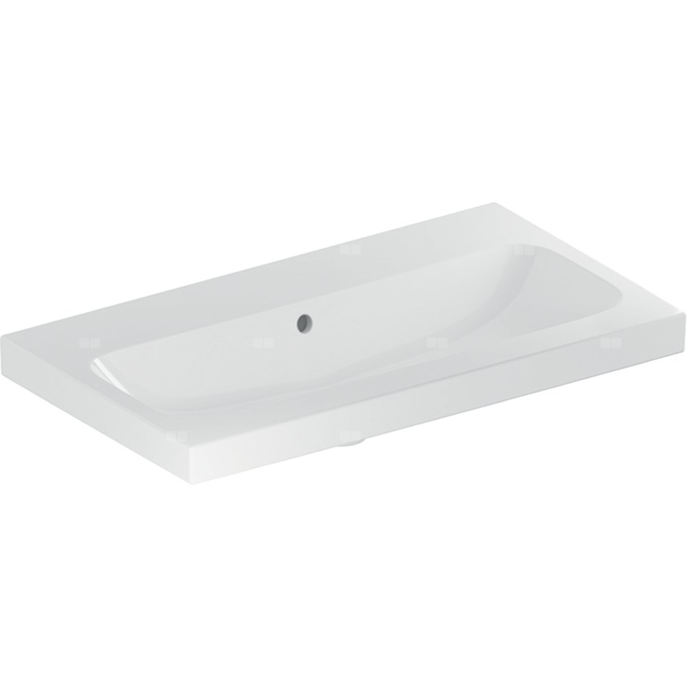 Umywalka GEBERIT iCon Light prostokątna, biała / KeraTect, 750mm, bez otworu na baterię, z odpływem przelewowym, półka od ściany