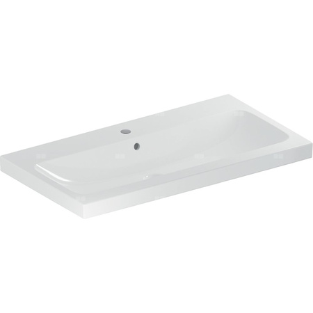 Umywalka GEBERIT iCon Light prostokątna, biała / KeraTect, 900mm, otwór na baterię na środku, z odpływem przelewowym, półka od ściany