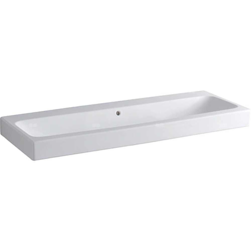 Umywalka GEBERIT iCon prostokątna, biała / KeraTect, 1200mm, bez otworu na baterię, z odpływem przelewowym, półka od ściany