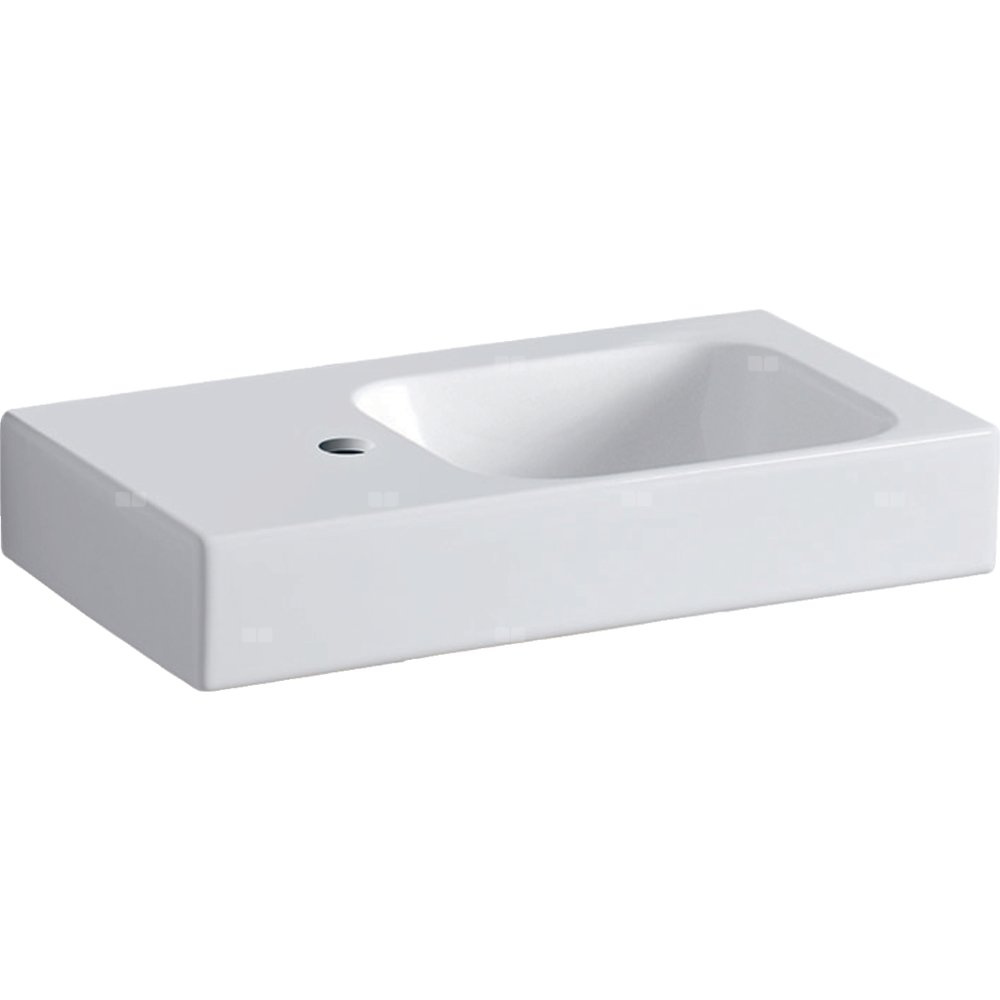 Umywalka GEBERIT iCon prostokątna, biała / KeraTect, 530mm, otwór na baterię z lewej, bez odpływu przelewowego, półka z lewej