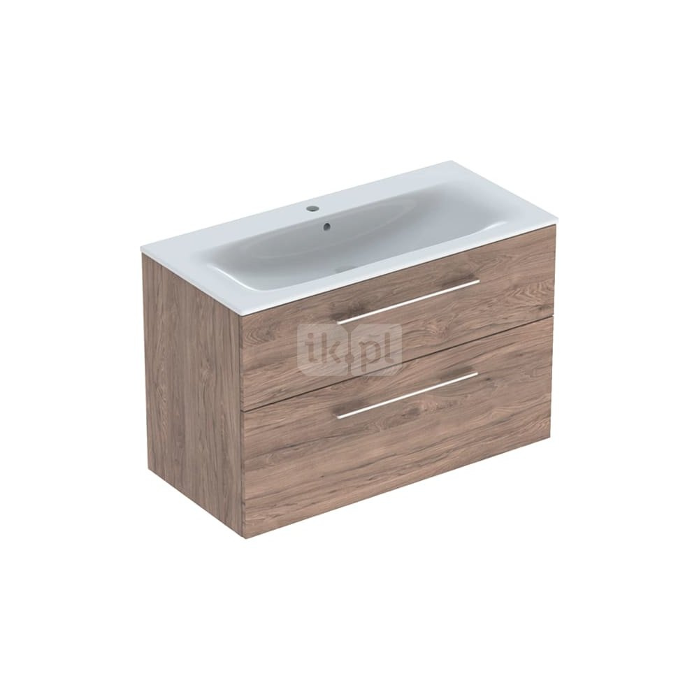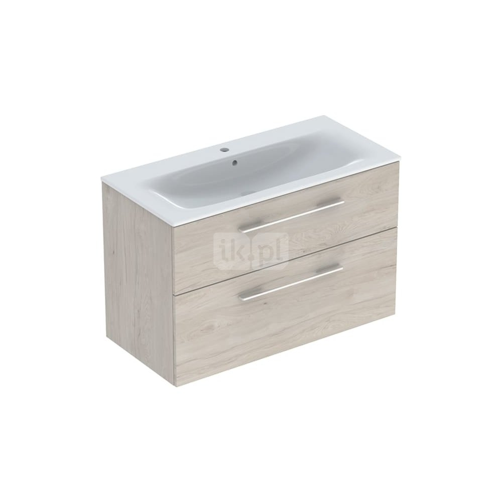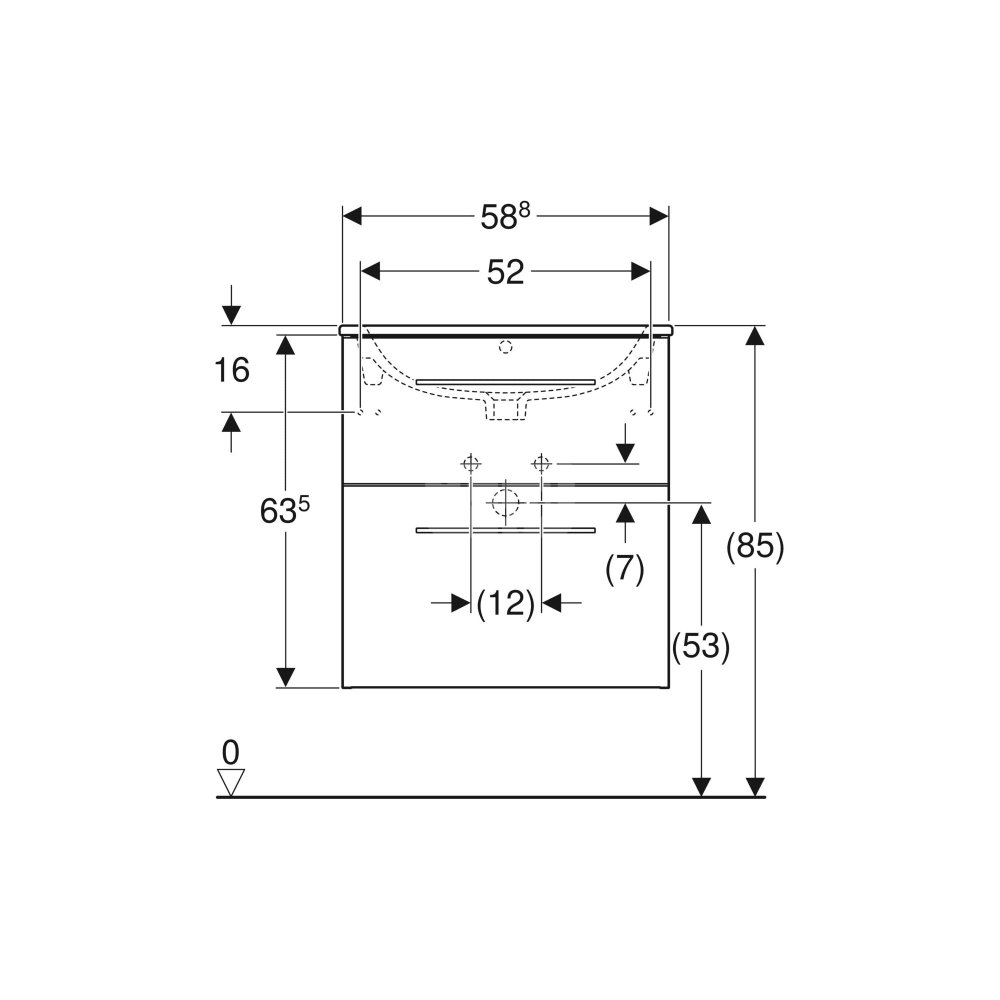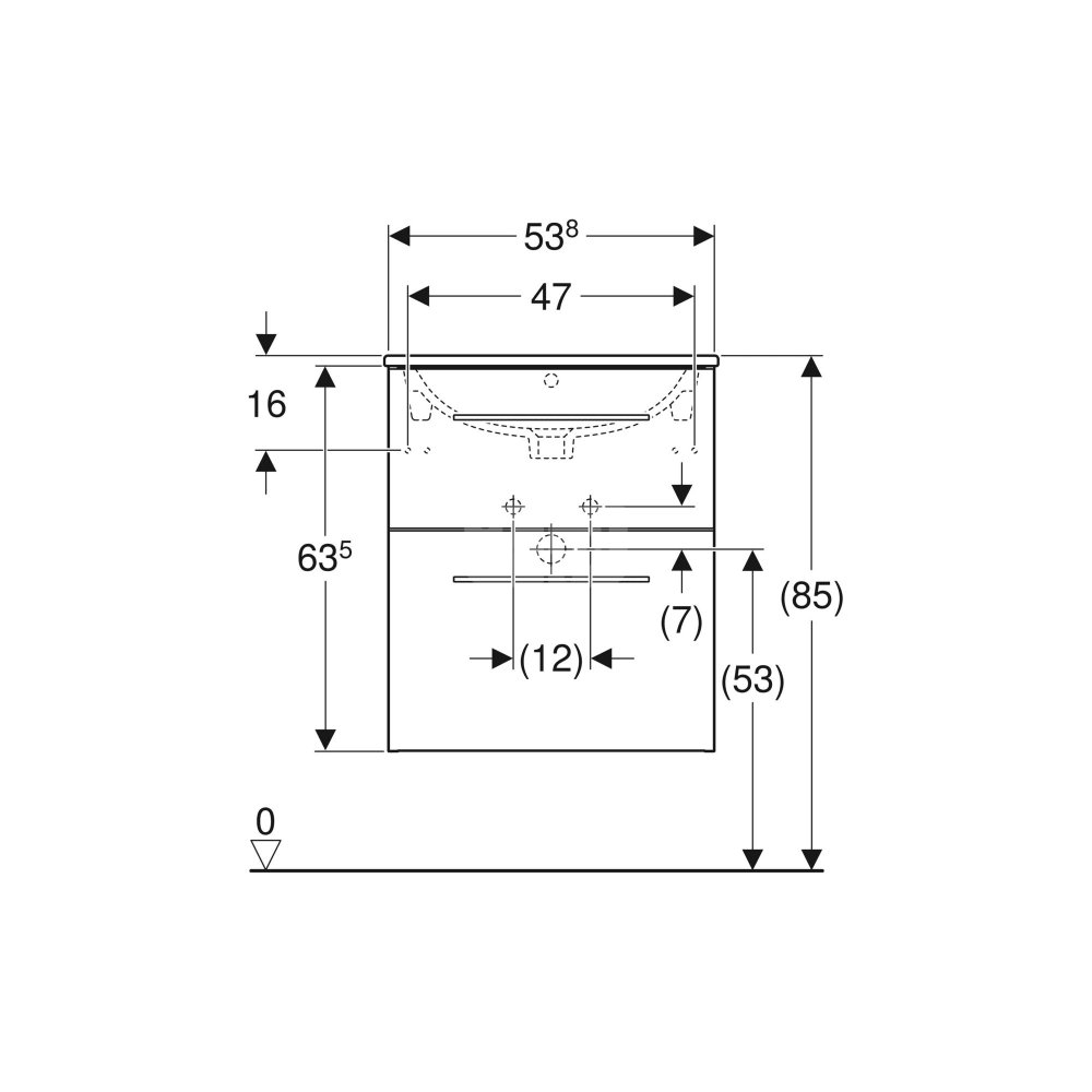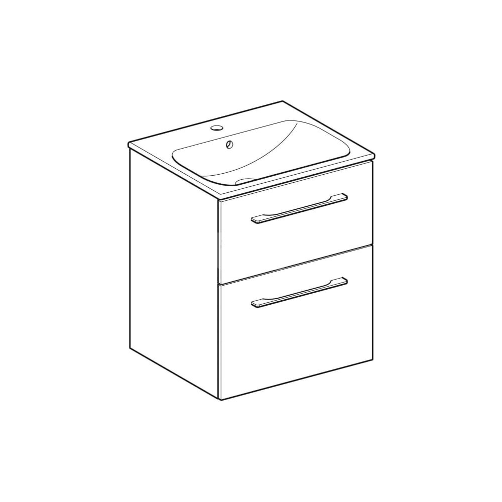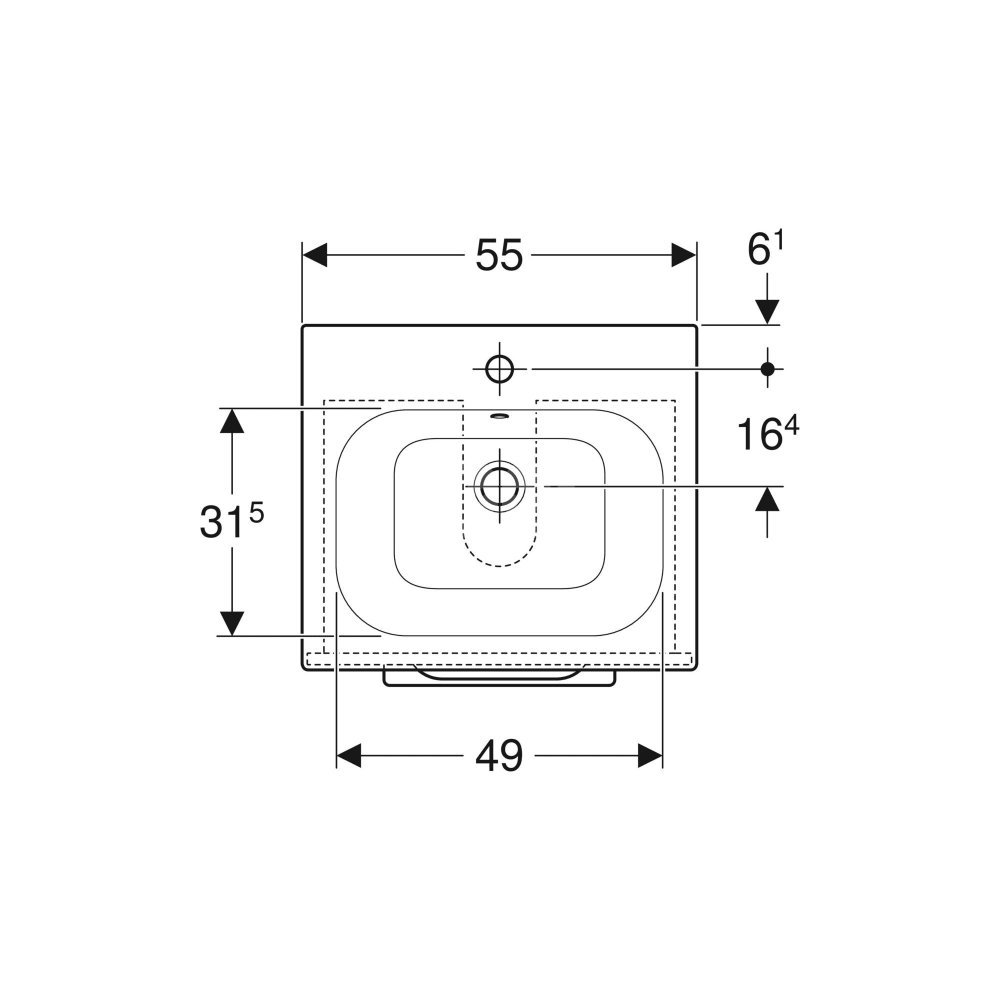 Umywalka GEBERIT Selnova Square prostokątna, biała, 550mm, otwór na baterię na środku, nakładany od góry, z odpływem przelewowym, półka od ściany