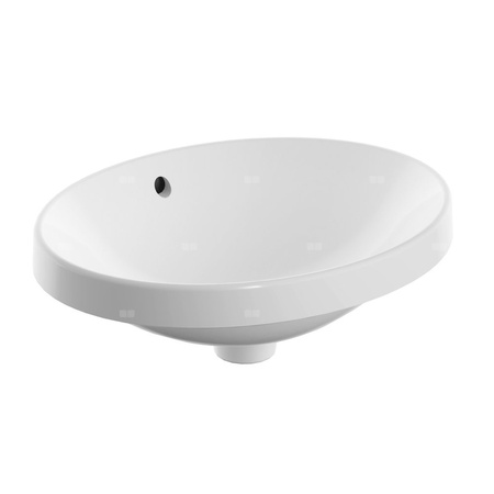 Umywalka GEBERIT Variform eliptyczna, biała / KeraTect, 500mm, bez otworu na baterię, wpuszczana w blat, z odpływem przelewowym, bez półki