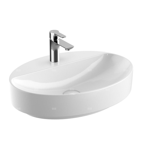 Umywalka GEBERIT Variform owalna, biała / KeraTect, 600mm, otwór na baterię na środku, stawiana na blat, bez odpływu przelewowego, półka od ściany