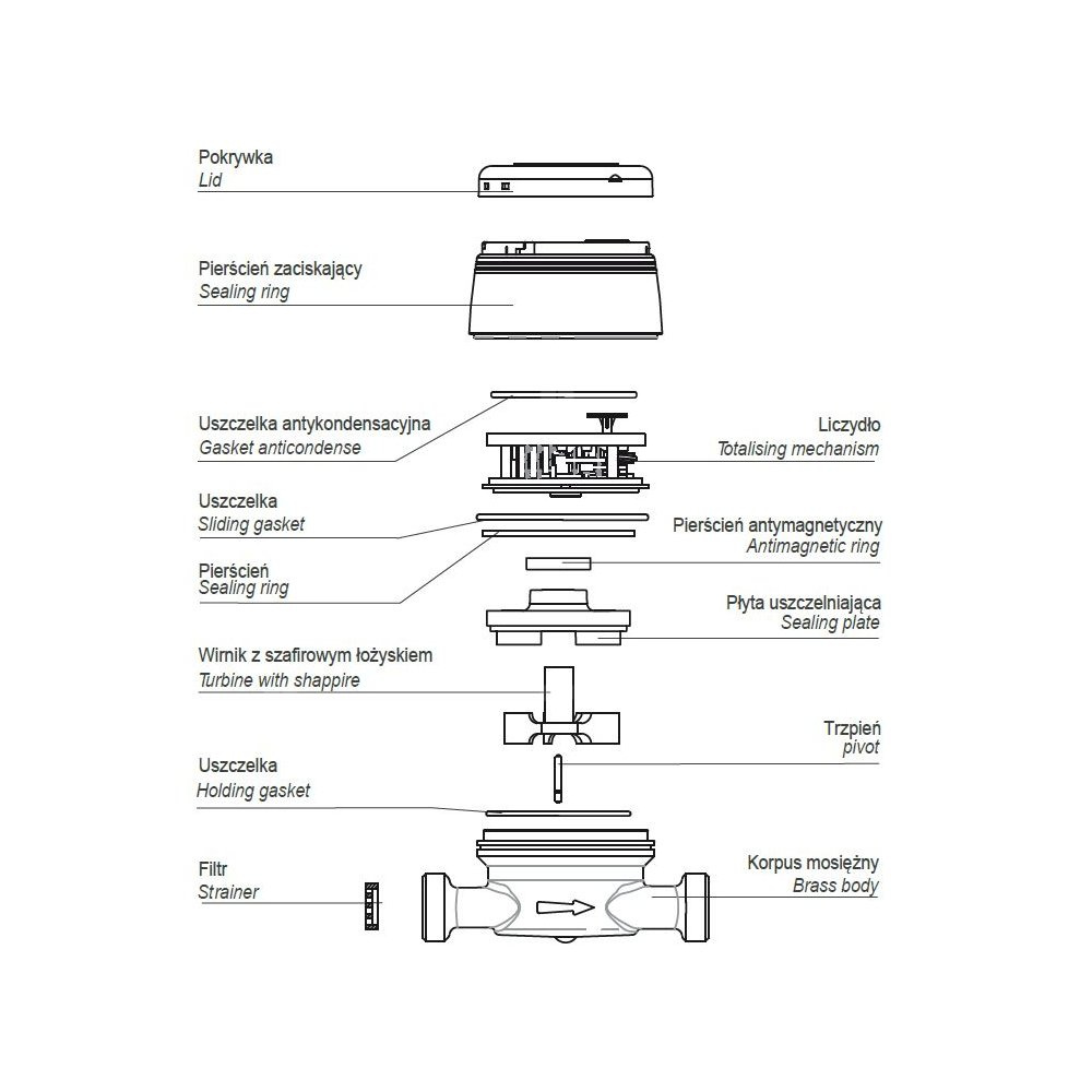 Wodomierz jednostrumieniowy suchobieżny antymagnetyczny, typu GSD8-I DN 15 Q3=2,5 m3/h R160/50, Tmax: 90st.C, L=110 mm