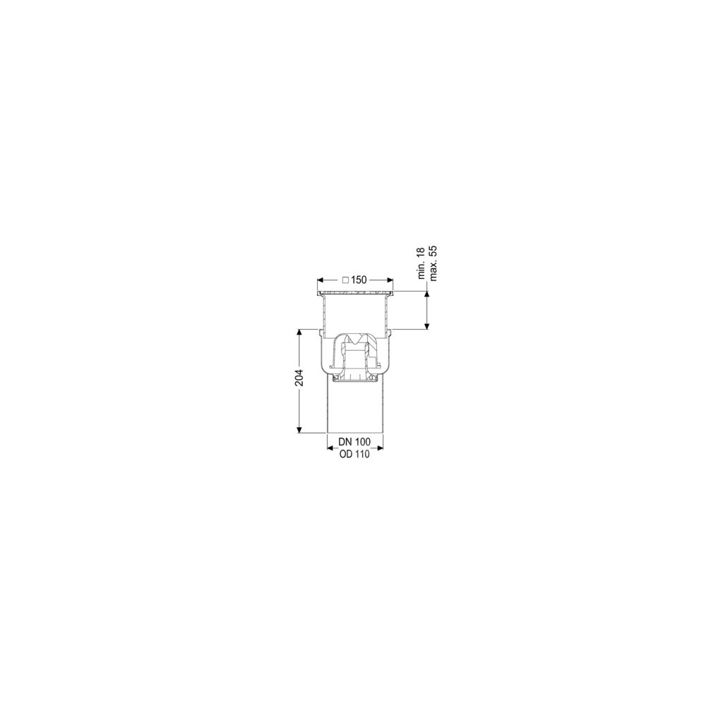 KESSEL Wpust podłogowy/stropowy Ferrofix, System 125, wielkość nominalna (DN) 100, typ pokrywy Kratka szczelinowa, dł. pokrywy 138 mm, króciec pionowy, z regulowaną wysokością, wymiar zewnętrzny (DZ) 110 mm, pojemność 22,97 dm³