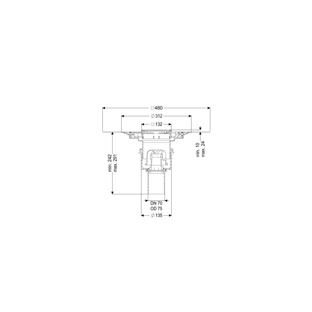 Wpust podłogowy/stropowy Practicus z tworzywa sztucznego służy do odwodnienia punktowego i jest wyposażony w krawędź przyłączeniową oraz wyjmowany syfon, uszczelkę wargową i pokrywę ochronną na czas fazy budowlanej. Z nasadą z ABS z teleskopową regulacją wysokości. Wpust spełnia szczególne wymagania w zakresie izolacyjności akustycznej zgodnie z pomiarami Instytutu Frauenhofera w Stuttgarcie. Króciec odpływowy jest przystosowany do podłączenia do rur SML. Z możliwością przyłączenia do systemu wyrównania potencjałów.