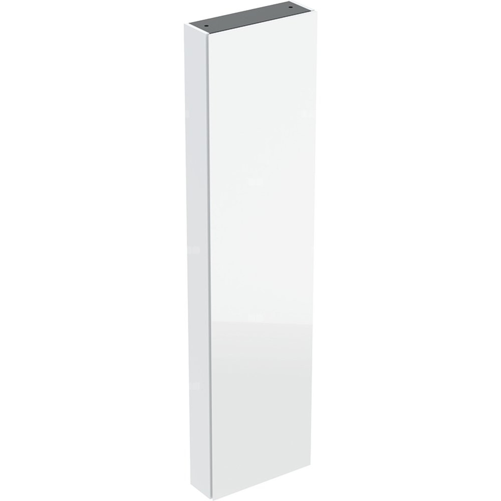Wysoka szafka Geberit, z jednymi drzwiami i lustrem wewnętrznym, krótka: 45x180cm, Korpus: biały / lakierowany na wysoki połysk, Front: biały / szkło błyszczące