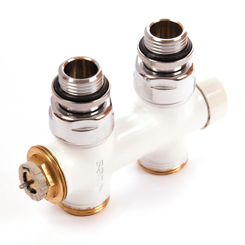 Zawór grzejnikowy termostatyczny COMAP DESIGN prosty z nastawą wstępną, połączenie 1/2'' x 3/4'' mosiądz (malowany) biały