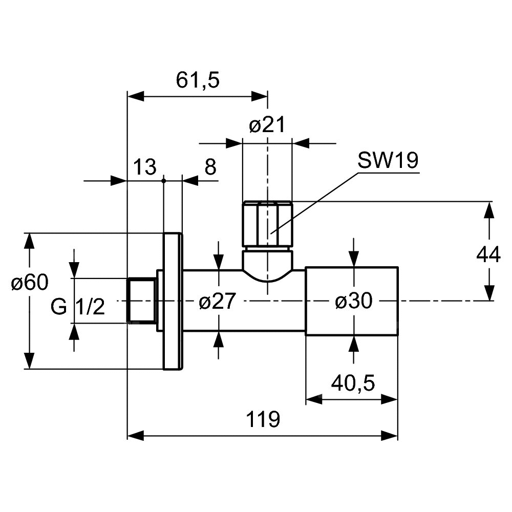 Zawór kątowy 60x119x74 mm w wykończeniu chromowanym - MULTI SUITES - FINISHED PRODUCTS