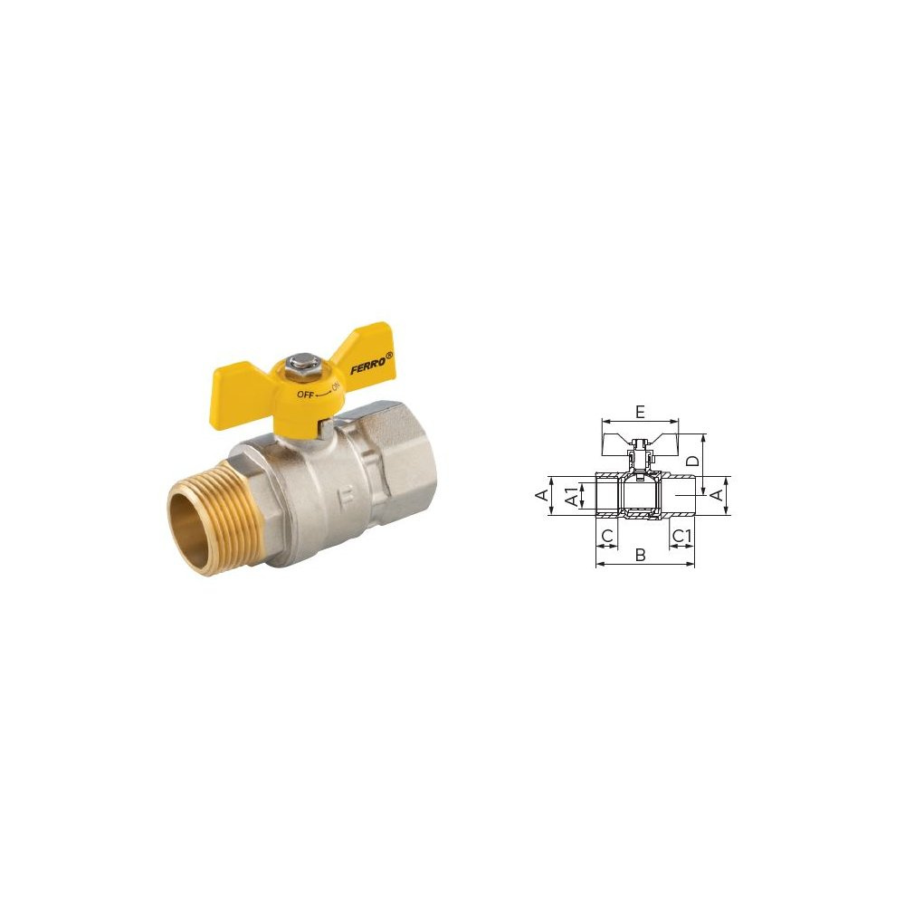Zawór kulowy gazowy 3/4" GW-GZ typ G18 z motylkiem