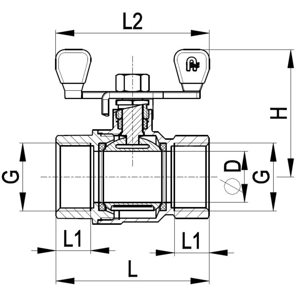 Zawór kulowy do wody nakrętno-Nakrętny z motylkiem 1