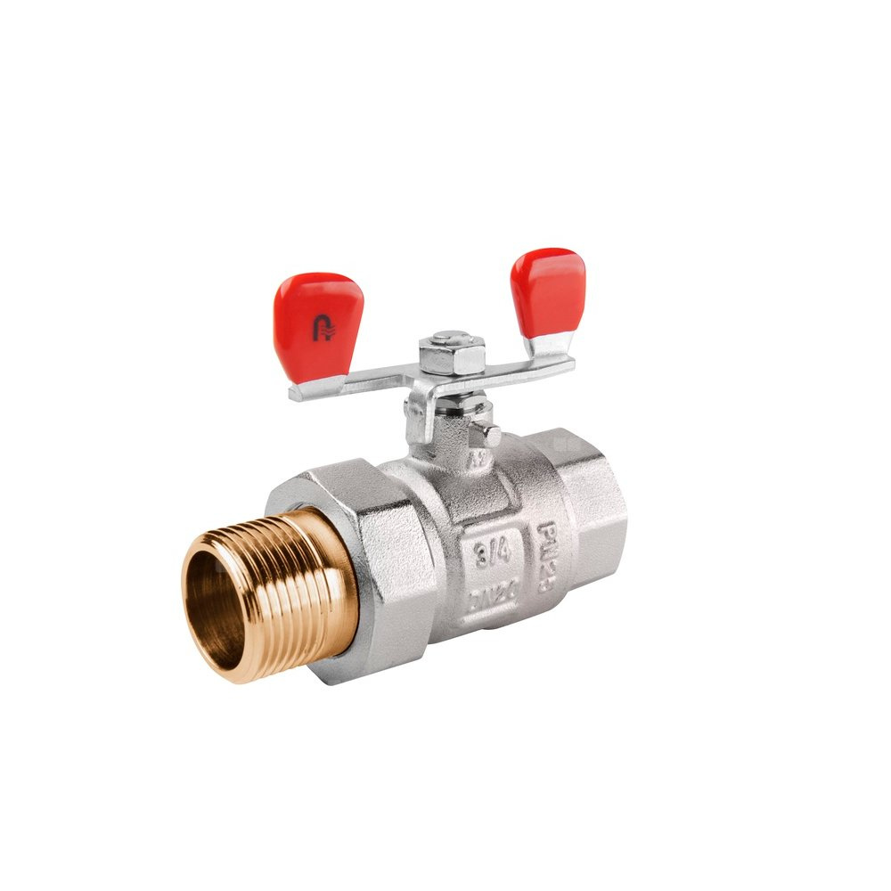 Zawór kulowy do wody nakrętno-Wkrętny ze śrubunkiem i motylkiem 3/4