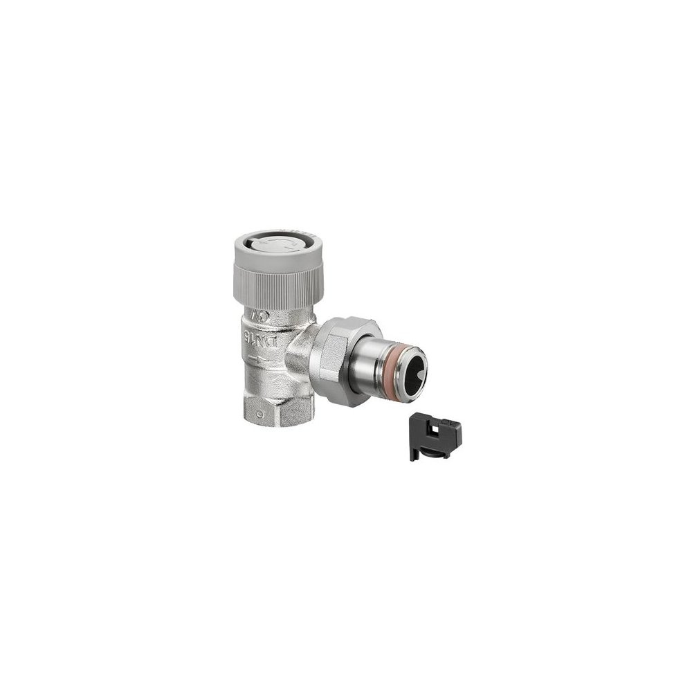 Zawór termostatyczny AQ, DN 15, kątowy, z funkcją automatycznego równoważenia i sitkiem filtrującym, z półśrubunkiem samouszczelniający