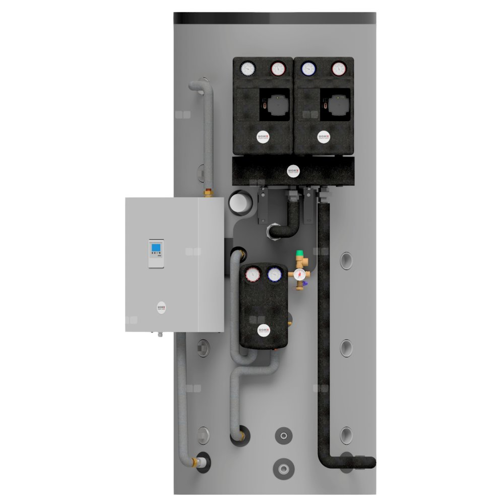 Kompletne systemy zabudowy kotłowni z buforem ciepła powstały w celu umożliwienia kompaktowej zabudowy kotłowni wykorzystujących pompę ciepła. Dostępne są w trzech pojemnościach tj. 500L, 800L oraz 1000L. Dedykowana uchwyt montażowy oraz przyłącza, w które wyposażone są bufory pozwalają na montaż systemów ciepłej wody użytkowej WS40, zestawów grup pompowych D oraz grupy solarnej Vertigo VRD w przypadku wykorzystania energii słonecznej. Bufory posiadają wbudowaną wężownicę do współpracy z różnymi źródłami ciepła oraz możliwość montażu dodatkowej grzałki elektrycznej 1 1/2”, służącej jako wspomaganie podgrzewania wody.