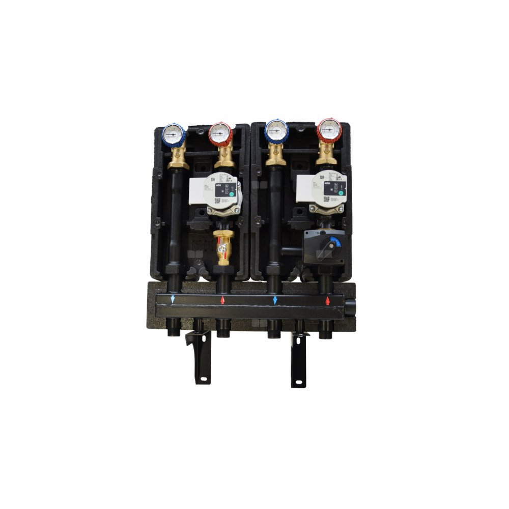 Model Zestaw D. Z Grupami Sa 125 – Dn 25 Z Izolacją I Smt 125 – Dn 25 Z Izolacją, Rozdzielaczem C 60 2F – Dn 25, Uchwytami Naściennymi Delta, Siłownikiem Mp 10/140S Oraz Zaworem Zwrotnym.