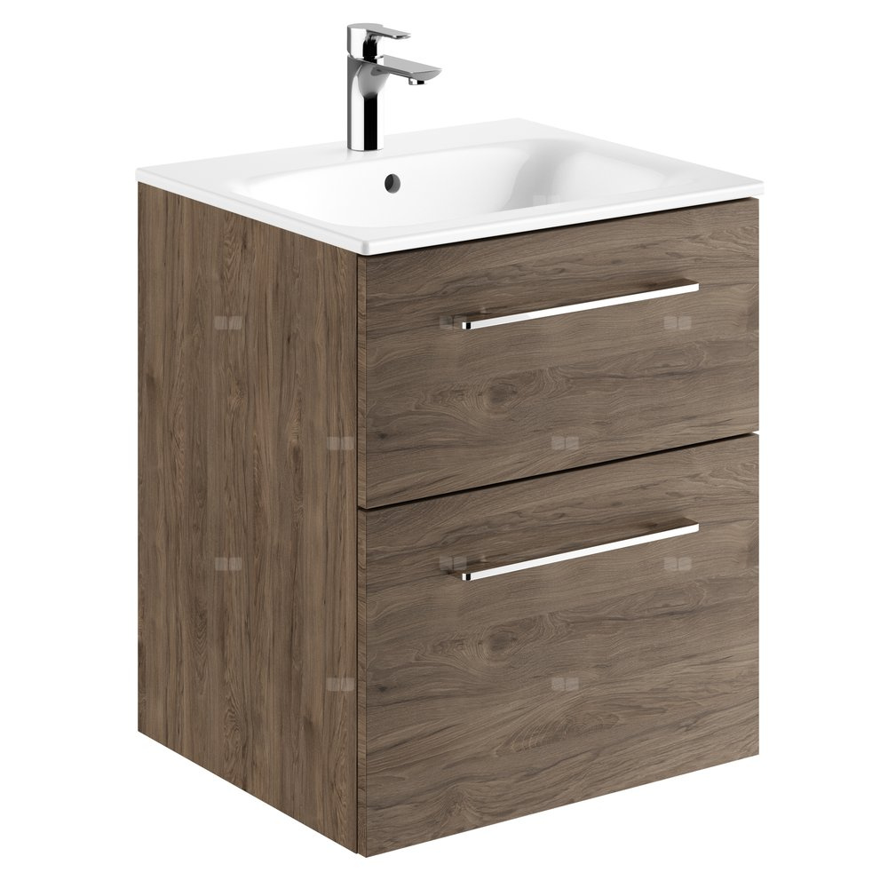 Zestaw umywalki meblowej Geberit Selnova Square, slim rim, z szafką pod umywalkę, z dwoma szufladami: B1=53.8cm, T=50.2cm, Otwór na baterię=Na środku, Przelew=Widoczny, Orzech włoski hickory