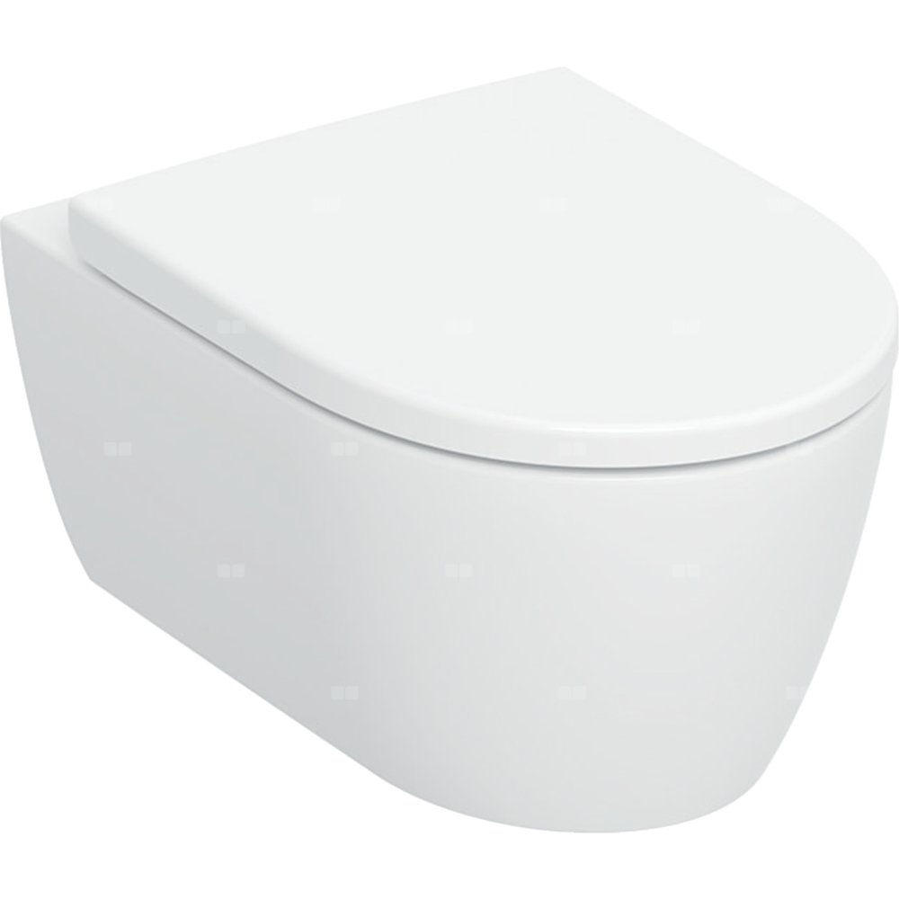 Zestaw wiszącej miski WC Geberit iCon, lejowa, ukryte mocowania, TurboFlush, z deską sedesową: T=53cm, Wolne opadanie=Tak, Zawiasy wypinane=Blokowane, Mocowanie=Od góry, Biały