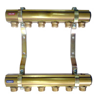 Rozdzielacz do instalacji c.o. QIK mosiądz GW 1'', 6-obieg. GZ 3/4''